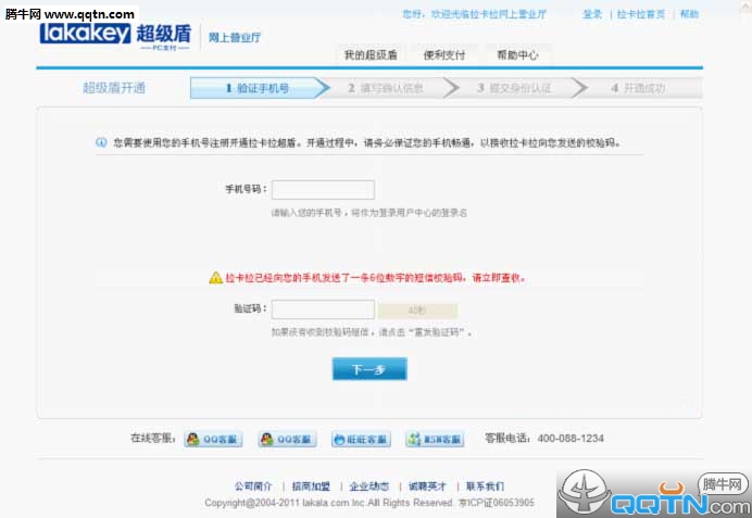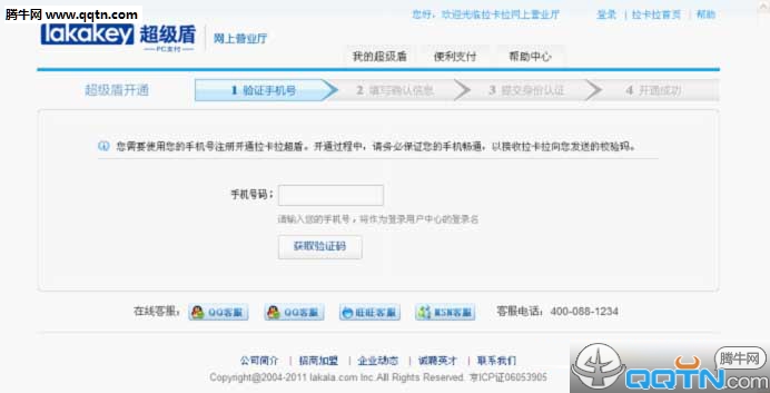 1. 打开拉卡拉超级盾网上营业厅,点击“超级盾开通”链接,进入开通流程;