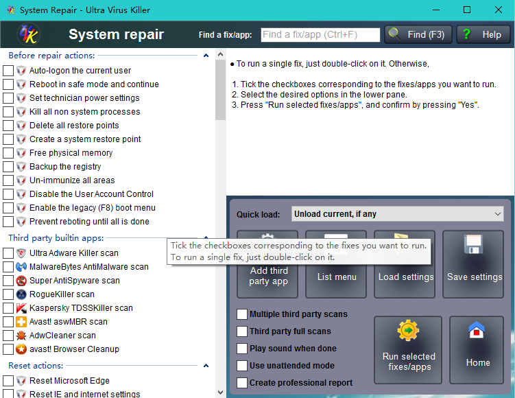 Ultra Virus Killer是一款卓越的病毒清除及Windows系统修复工具。UVK的界面设计简洁明了,操作直观易懂,使用户能够轻松检测和清除各类恶意软件及间谍软件,从而净化受感染的系统。此外,该软件还提供大量实用的修复工具,为您的系统安全提供坚实保障,是一款不可或缺的工具。