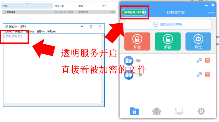 当透明服务关闭时,用户访问的是加密数据,必须手动解密后才能访问到真实数据