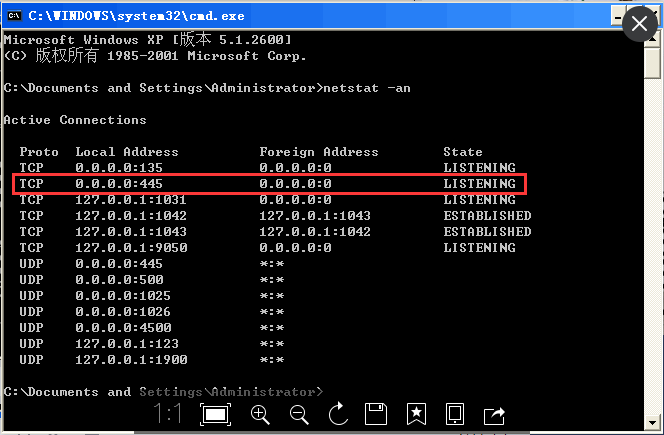 a)WIN+R 输入cmd,打开命令行操作窗口,输入命令“netstat -an”,检测445端口是否开启。