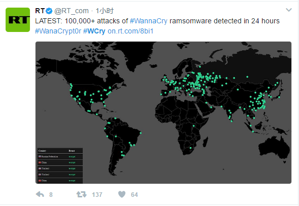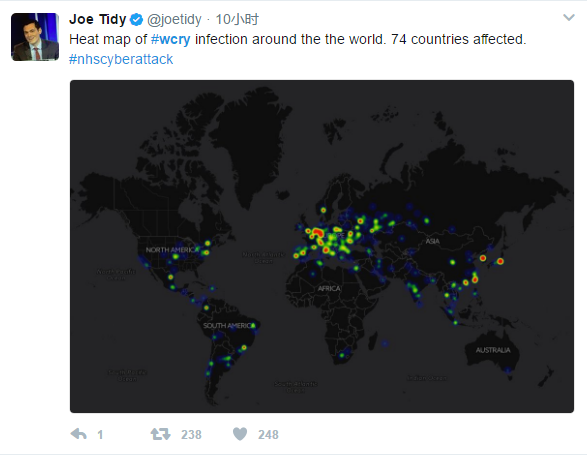 【1】全球74个国家遭遇Onion、WNCRY敲诈者蠕虫感染攻击