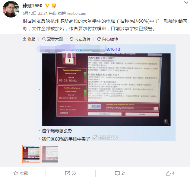 【4】全国各地的高校内网的敲诈者蠕虫感染攻击爆发