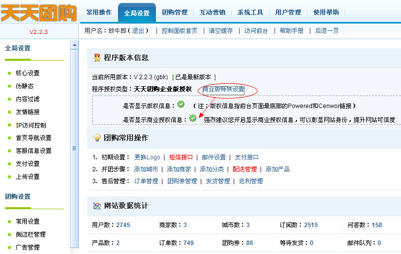 天天团购后台支持一键升级至最新版本,并可实现任意版本的差异化升级,彻底避免传统升级方式中网站内容被覆盖等问题,让用户随时享受最新功能。