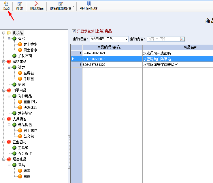 2.点击下图化妆品分类,选择你要上架的化妆品类别;