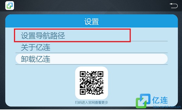 3、进入亿连主界面,点击左上角的设置或导航图标,设置导航路径