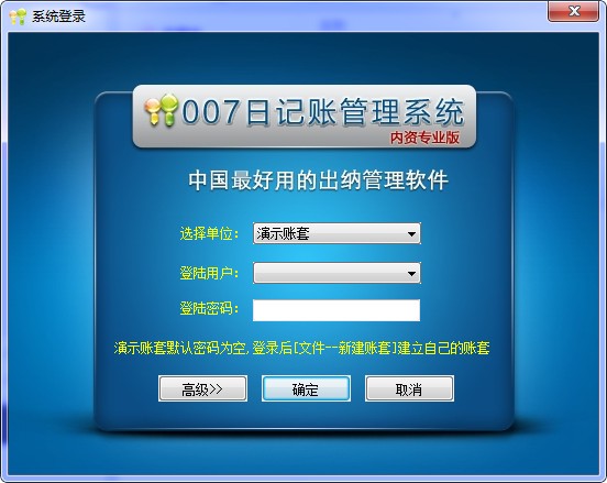 007日记账管理系统,演示账套的默认密码为空。登录后,用户可以在菜单文件中选择新建账套,便可创建个人专属账套。其业务处理功能涵盖初始现金余额、初始银行余额、现金日记账、银行日记账、银行对账单、现金盘点对账、银行存款对账、出纳扎账及出纳反扎账等。