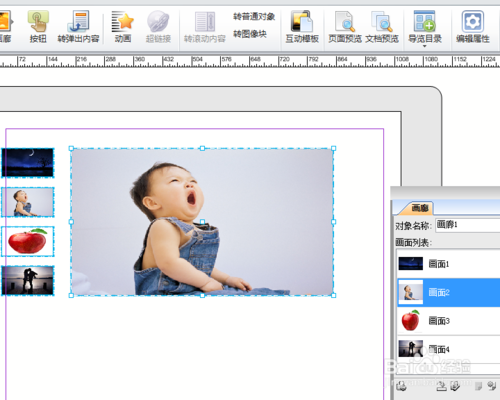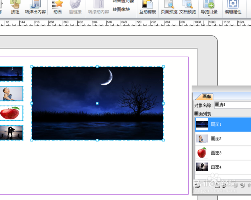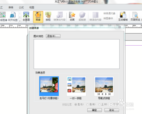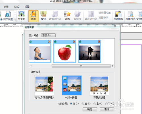 点击“画廊”按钮,选择所需的画廊版式,包括走马灯、一对一按钮、导航按钮等,挑选适合的表达效果。