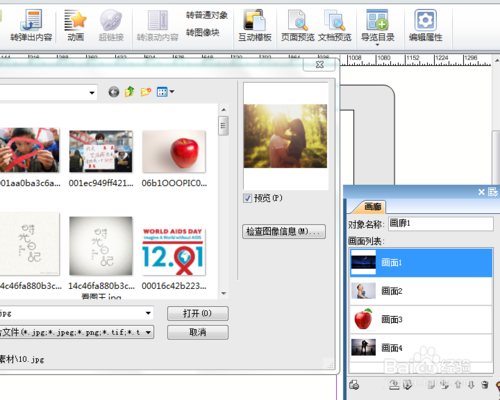 通过弹出框的下拉按钮,可以对图片进行添加与释放,可以添加单个或多个画面,也可以释放对象,使图片转换为普通格式,还可重置画廊。