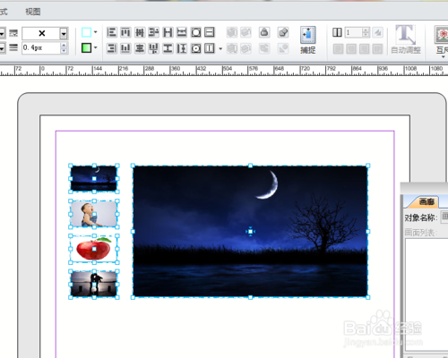 画廊效果是指在版面中排入多张相同尺寸的图片,通过悬浮面板设置相关参数,迅速创建画廊对象的效果。具体步骤如下: