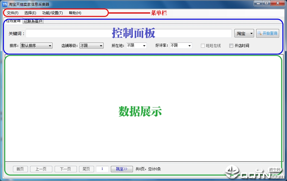 本软件能够采集包括卖家的旺旺、商铺名称、商铺链接、商铺等级、开店时间、联系电话、好评率、销量、产品数量等信息,并支持批量直接与卖家通过旺旺对话,成为店铺装修、厂家及其他行业的首选良品。
