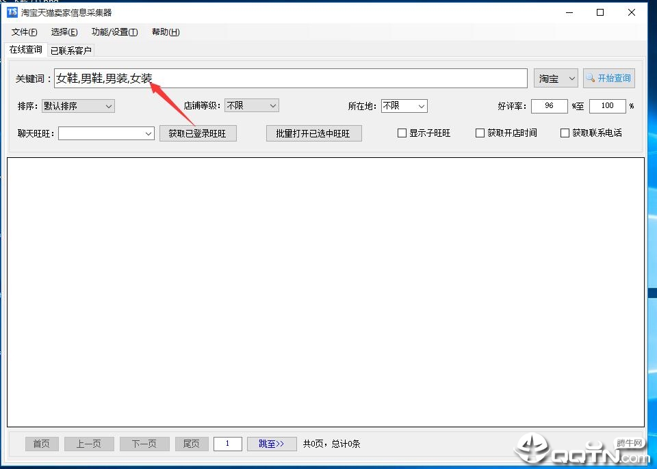 关键词搜索:搜索淘宝、天猫及全球购的卖家信息关键词;