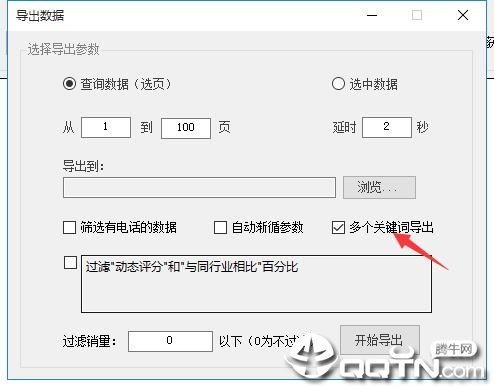 然后在导出的界面勾选“多个关键词导出”选项;这样便可实现多个关键词的批量导出;