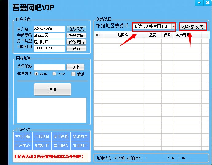 5、选择对应游戏的网吧VIP,点击获取线路列表;