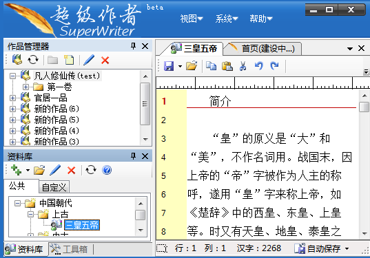 超级作者软件是一款辅助软件,我相信有很多朋友都还不知道有写作的辅助软件,而且功能这么强大,试试这款超级作者软件吧,相信会给写作的朋友带来一番不一样的感受。