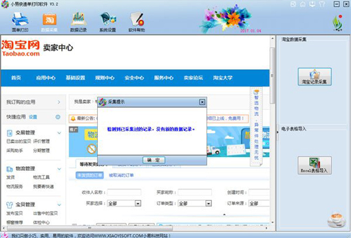 可以自动采集淘宝卖家销售记录并入库,进行汇总和打印。可以批量导入Excel电子表记录并追加入库,进行汇总和打印。也可将自己的记录导出为单子表格文件存档,还可以支持按月等分时段方式导出销售情况汇总报告为Excel文件存档。