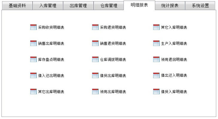 2)自动根据各种出库单统计库存状况和明细报表、统计报表