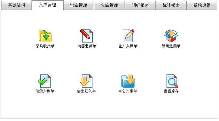 1)多种入库单据类型,如:采购入库、生产入库、借货入库、其它类型入库