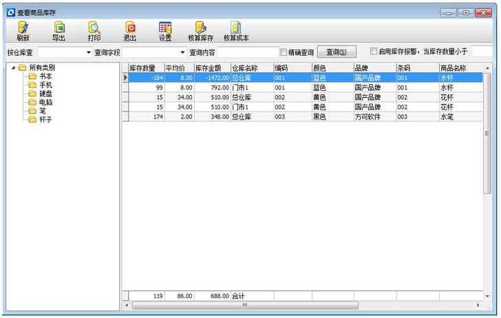 2)自动根据您的各种入库单计算库存数量与成本价格,一键打印单据格式