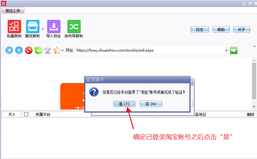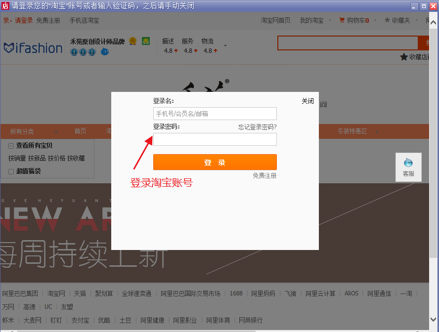 复制淘宝店铺时,需要登录淘宝账号,登录之后请关闭登录窗口。如下图所示: