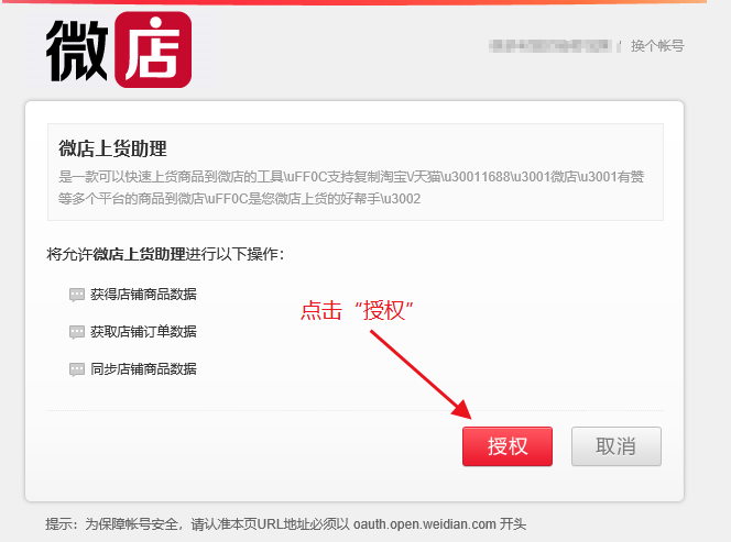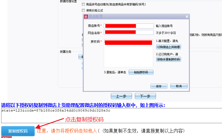 输入店铺账号,并点击“获取授权码”,如下图所示: