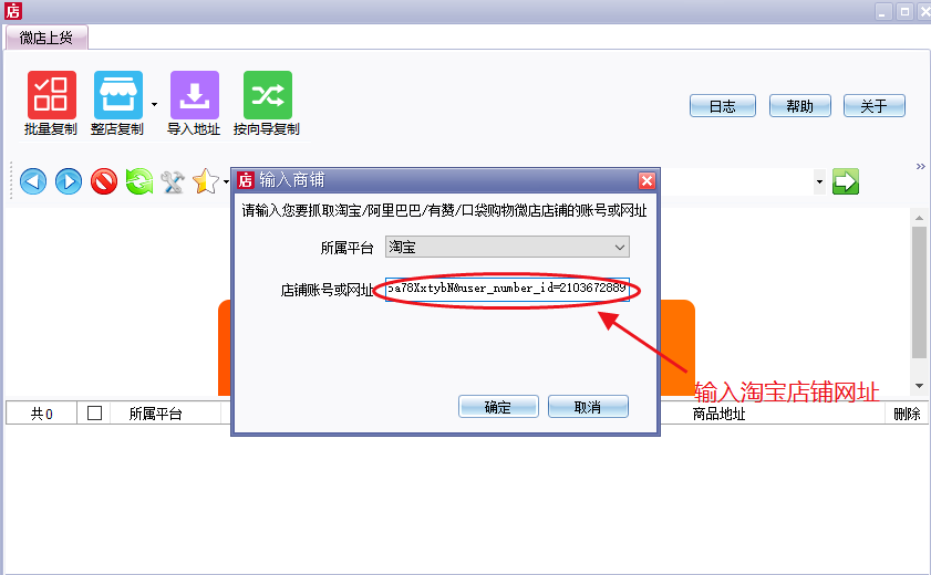 在输入框中,输入需要整店复制的店铺网址。如下图所示: