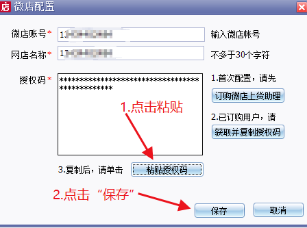 在配置弹窗中粘贴授权码,并点击“保存”。如图所示: