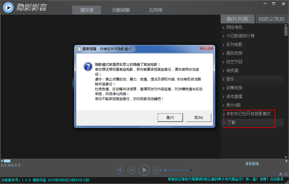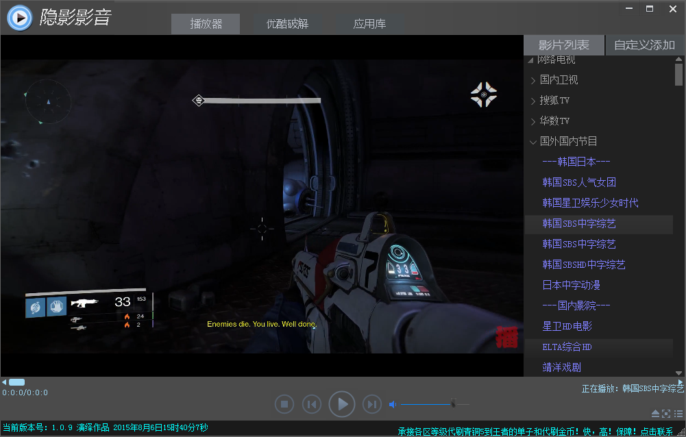 隐影影音是一款免费的视频影音播放器,这款播放器支持收看韩国日本影视、最新、国内影院、日本动漫、高清电影、搞笑视频、国外国内节目等,还可以免费下载视频,可以说是一款功能非常强大的多功能影音播放器。