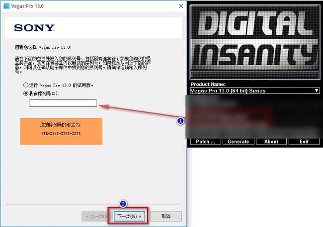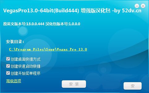 7、安装完毕后运行VegasPro13.0-64bit汉化包.exe,点击安装