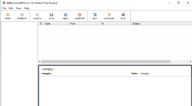 1、运行BitRecover MBOX到CSV向导,并点击“打开”按钮。