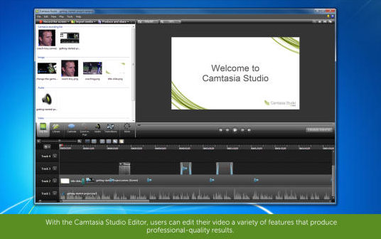 Camtasia Studio是最专业的屏幕录像和编辑的软件套装。软件提供了强大的屏幕录像(Camtasia Recorder)、视频的剪辑和编辑(Camtasia Studio)、视频菜单制作(Camtasia MenuMaker)、视频剧场(Camtasia Theater)和视频播放功能(Camtasia Player)等。使用本套装软件,用户可以方便地进行屏幕操作的录制和配音、视频的剪辑和过场动画、添加说明字幕和水印、制作视频封面和菜单、视频压缩和播放。