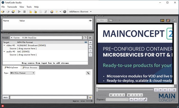 TotalCode Studio 为多媒体制作人和后期制作工作室提供专业编码。它支持 HEVC/H.265、AVC/H.264(包括 Apple iOS 的 QuickTime)、Adobe Flash、H.264 、L5、DVB、 MPEG-1/2、MPEG-4 Part 2 和 VC-1。