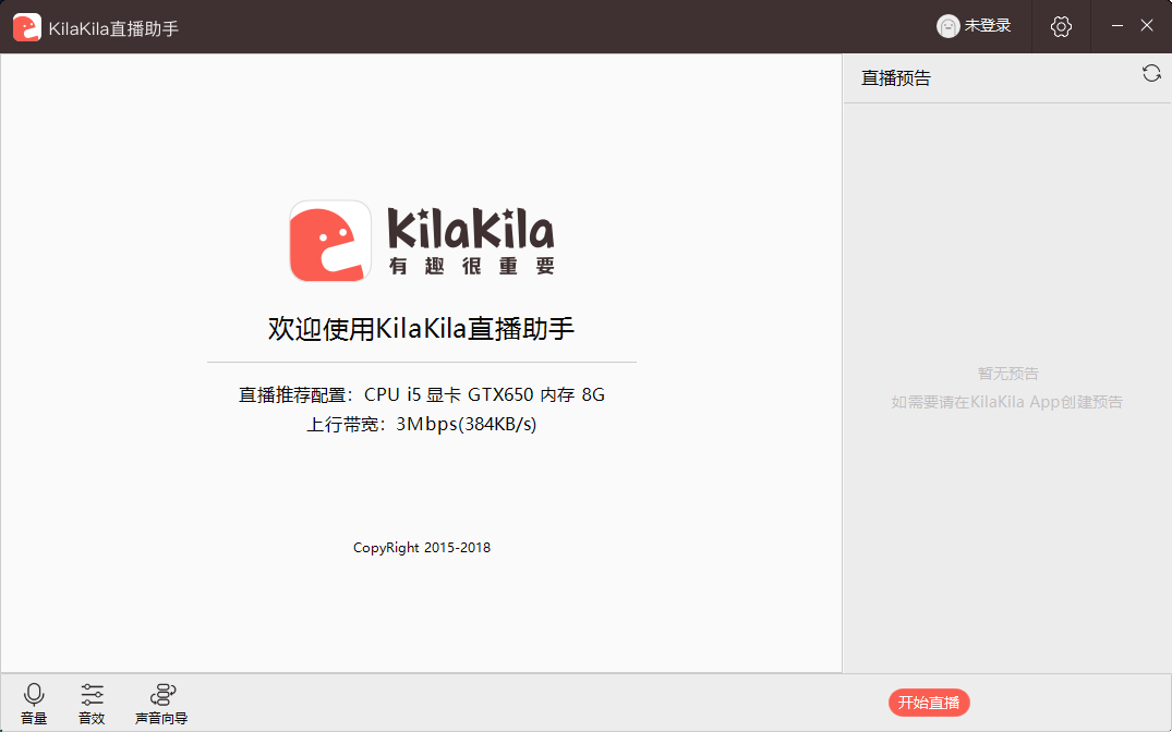 启动KilaKila直播助手后,在右上角登录,即可开始直播。
