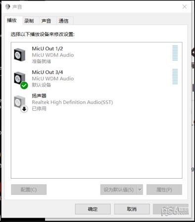 如图将“播放”的MicU Out 1/2设为“默认通信设备”,与3/4的默认设备区分开。