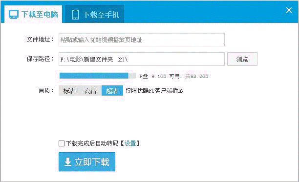 温馨提示:当片源不支持您选择的画质时,优酷客户端自动为您匹配清晰度较高的片源进行下载。