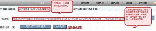 2、可获得:音悦台MV普通、高清、超清下载地址!点击在线下载即可