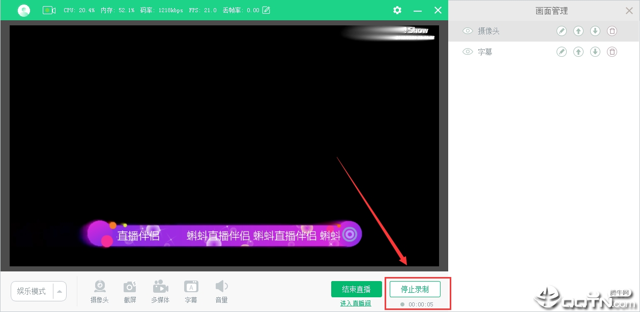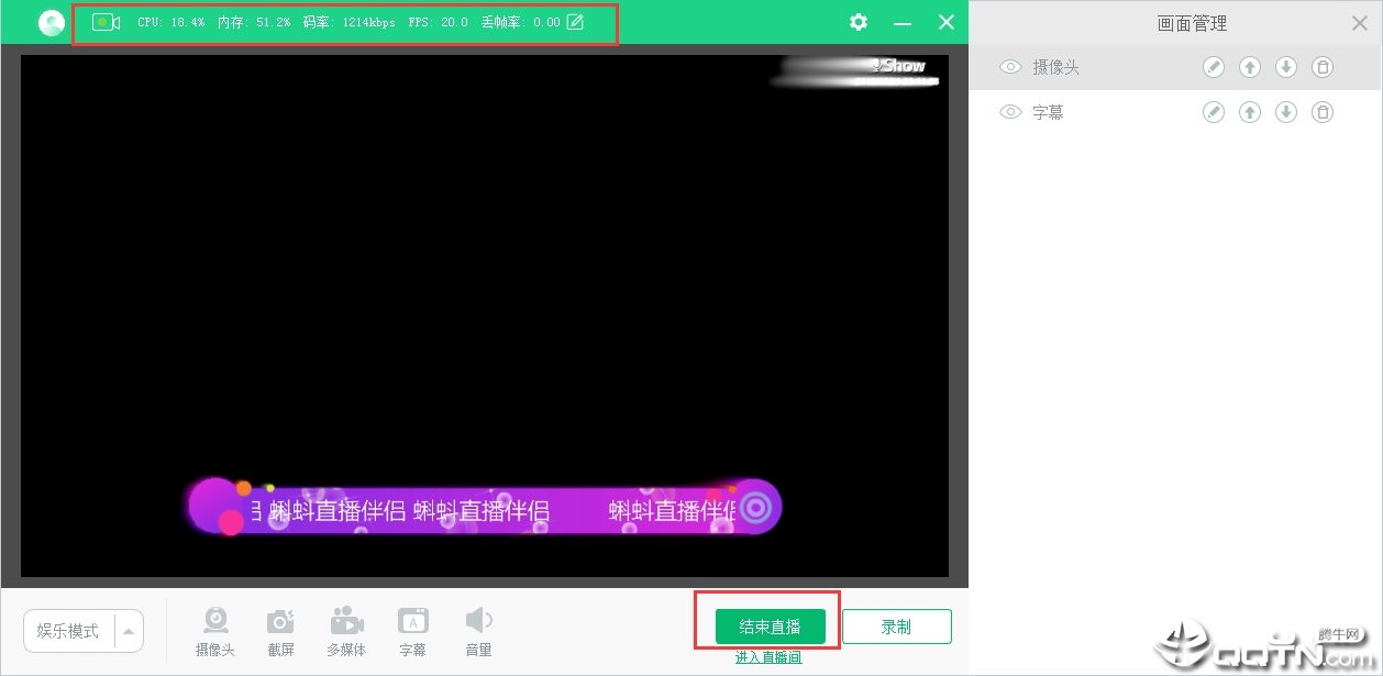 开播之后,可以观察界面上方的直播参数信息,左侧的图标绿点表示正常直播中,红点表示异常直播中;