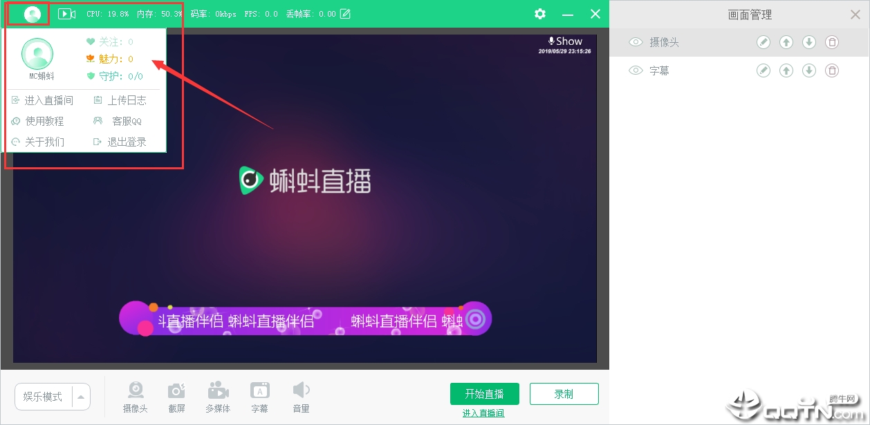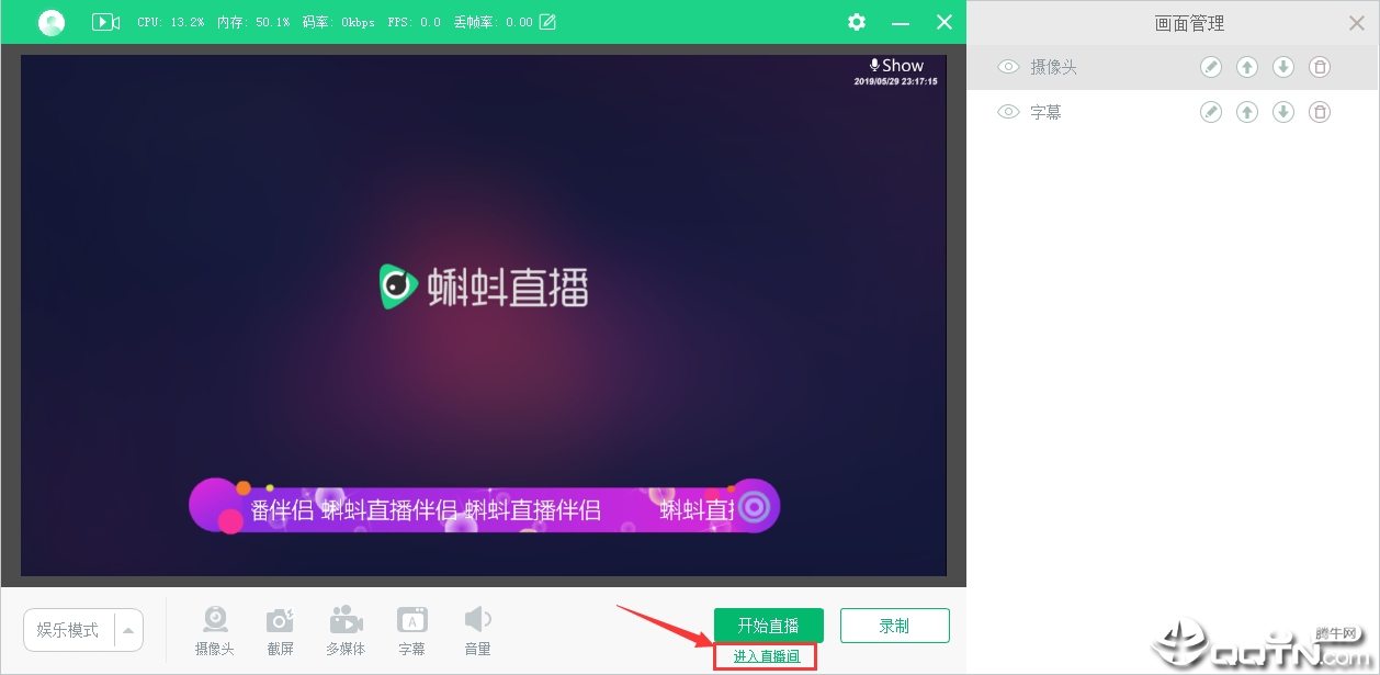 1、点击直播助手下方进入直播间或打开,登入蝌蚪直播,进入主播直播间