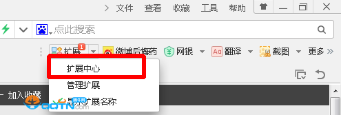 2、打开360浏览器,在右上方点击进入扩展中心