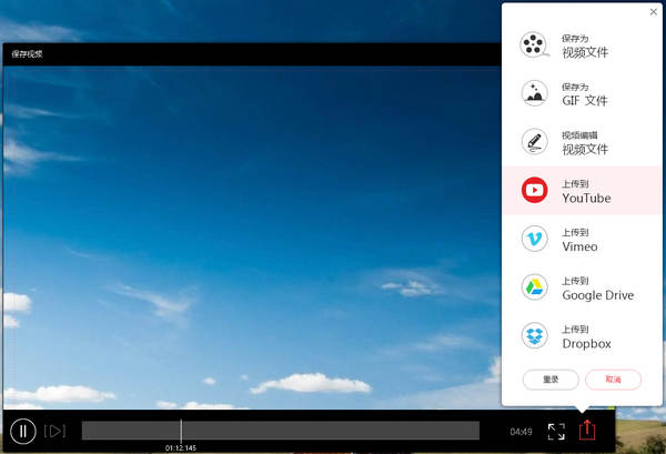 7.回放窗口可以回放录屏视频检视效果,最后点右下角‘保存’按钮保存或上传录屏视频资料。