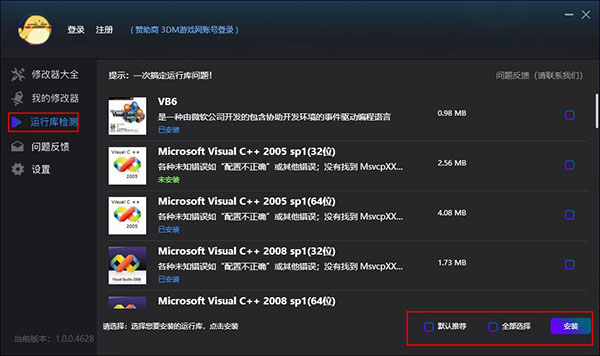 6、通过运行库检测,能够迅速发现电脑缺少的游戏运行环境,确保游戏本体的正常运行,操作可一键完成安装。
