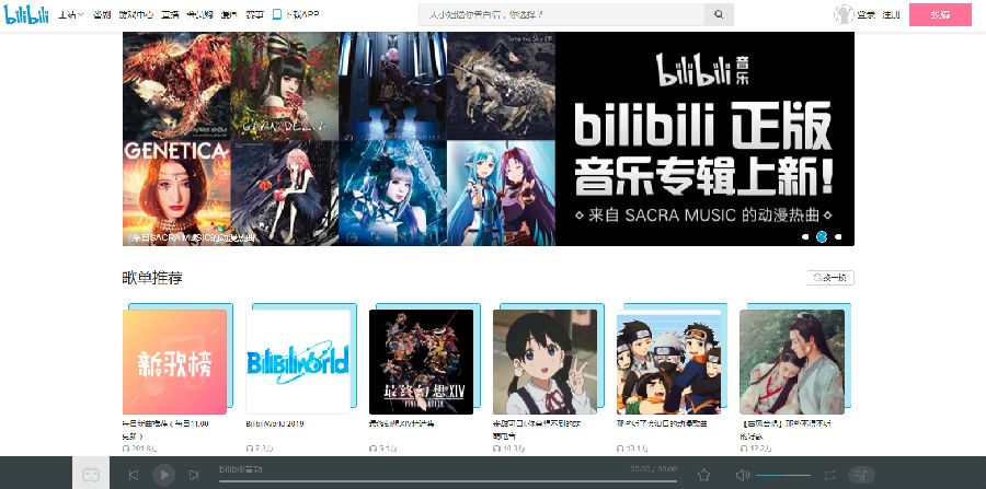 与其他平台类似,Bilibili音乐在PC端浏览器上配备了独立的播放器控件,便捷地呈现在网站的正下方。