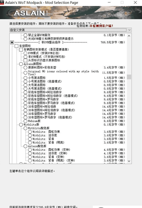 5. 滑动至非XVM整合内容部分,勾选所需的美化插件,然后点击下一步。