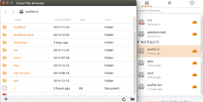 在一些场合下,你希望在不同步文件的情况下直接编辑服务器上文件。Seafile 客户端为此提供了“云端文件浏览器”。双击尚未同步到本地的资料库,即可打开云端文件浏览器,对云端的文件进行操作。