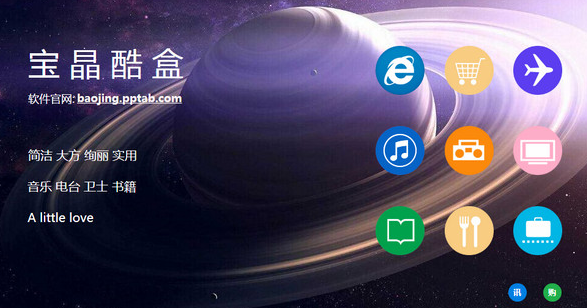 宝晶酷盒是一款集名站导航、新闻咨询、在线音乐、游戏、书籍资料、生活工具等功能的、时尚、绚丽、实用的应用软件;各个年龄段的人都可接受软件,都可成为软件的用户。