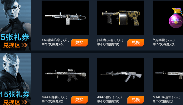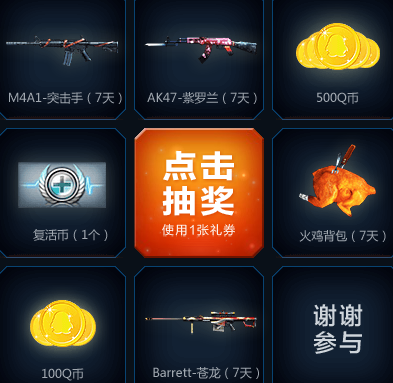 每日使用CF定制版QQ浏览器打开本页面进行签到即可获得一张礼券,使用对应数量的礼券可兑换道具或参与抽奖。
