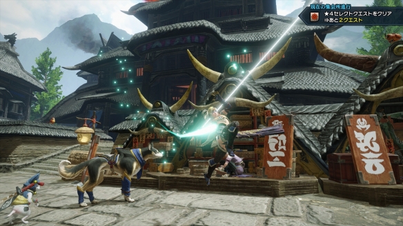 -猎人据点“炎火村”。吹踏鞴盛行的山明水秀之乡。 齐备了武器和防具加工店等对猎人而言不可或缺的设施,而个性丰富的居民也会为猎人提供帮助。