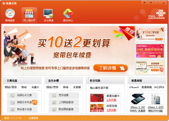 网上营业厅要为北京联通用户提供实时促销活动的图片滚动链接功能和包括缴费充值、业务办理、积分兑换以及联通商城等专用业务办理通道平台;方便用户直接办理各种交易业务、查询各类业务清单、查询各种业务记录、贴心的积分兑换服务以及联通商城中优惠促销的各种最新产品通道。