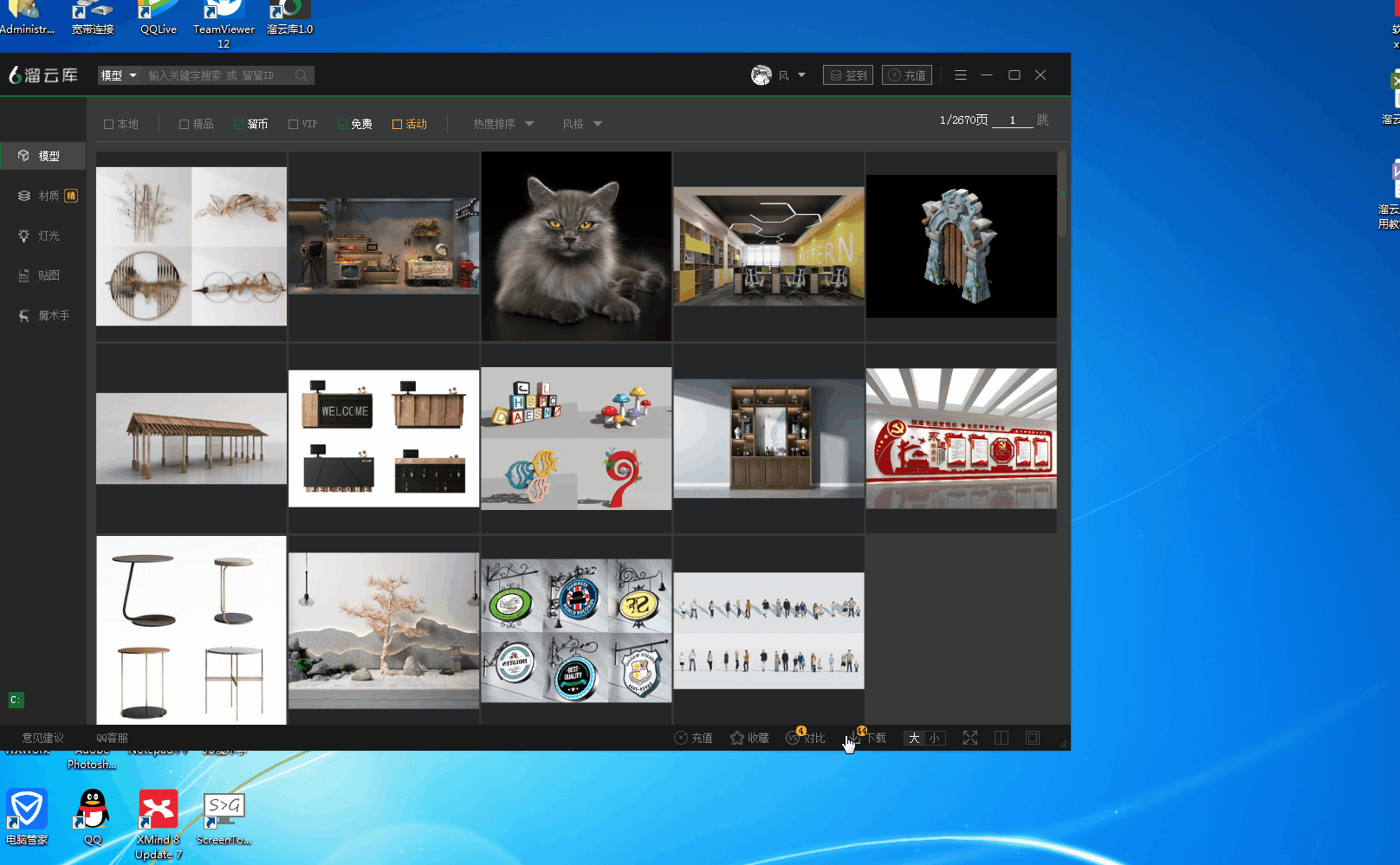 溜云库同步3d溜溜网的素材三级分类,同时可对比模型,方便我们挑选自己合适的模型。 如图一十二。