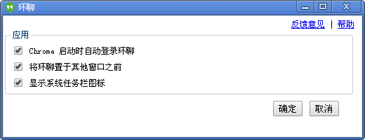 4.在应用选择中,你可以设置环聊与谷歌浏览器同步启动等操作