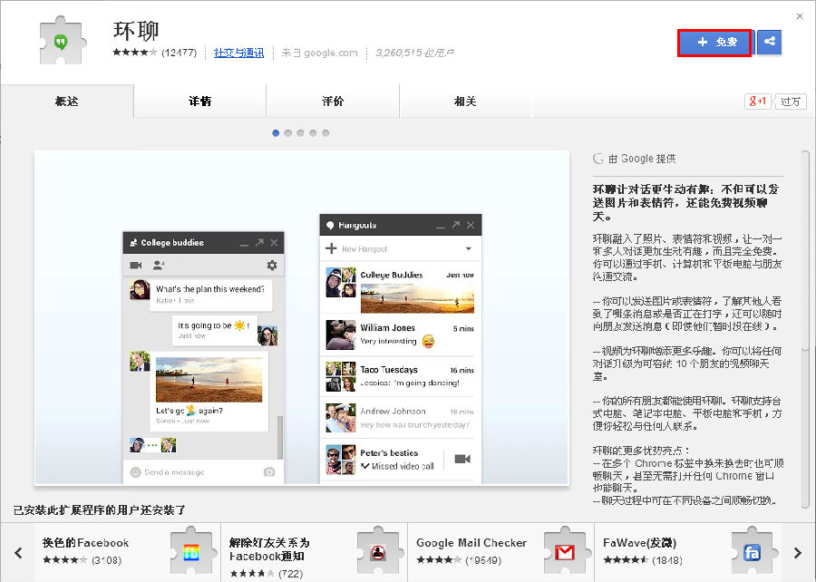 每位用户需安装Google插件。您可在此获取该插件。通过Google Talk或Gmail进行视频通话或加入环聊时,该插件是必需的。如果用户尚未安装,当首次加入或发起环聊时,系统会提示其安装该插件。
